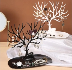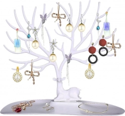 Suportul stilat pentru bijuterii în formă de copac îmbină funcționalitatea cu designul modern. Mai multe brațe oferă suficient spațiu pentru cercei, brățări, coliere și ceasuri, în timp ce baza lată păstrează inelele și mărunțișurile la îndemână, în siguranță. Finisajul minimalist alb se potrivește în orice interior și funcționează ca o decorațiune rafinată.