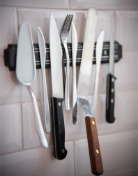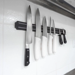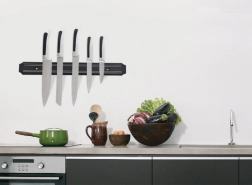 O singură șină – multe posibilități. Susține cuțite de bucătărie, teluri, foarfece și unelte în atelier. Ordine și vizibilitate pe o suprafață mică.