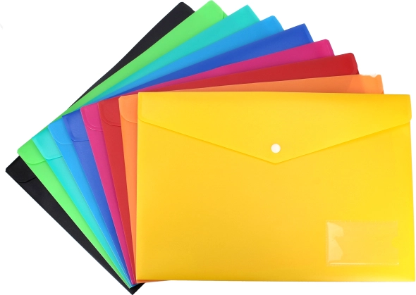 Această mapă este fabricată din plastic moale, ceea ce îi asigură facilitatea de a fi spălată și o durată lungă de viață. Sistemul practic de închidere cu capsă păstrează toate documentele dumneavoastră în siguranță și împiedică pierderea acestora.