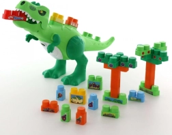 Pe spinarea și coada dinozaurului se găsesc locuri pentru atașarea blocurilor, astfel încât copilul poate proiecta singur cum va arăta dinozaurul. Scoaterea ușoară a blocurilor din partea inferioară permite crearea unui mediu nou pentru dinozaur.