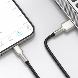 Conectorii din aliaj de zinc rezistă la oxidare și decolorare, iar împletitura robustă protejează nucleele interne și asigură o durată de viață îndelungată. Cablul suportă, de asemenea, sincronizarea fișierelor cu viteze de până la 480 Mb/s, astfel că transferi fotografii, clipuri și documente în doar câteva clipe.