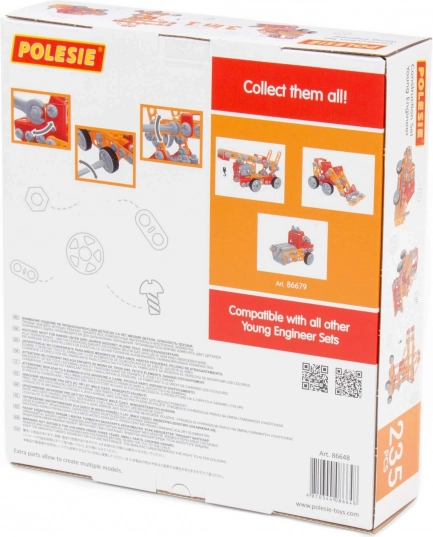 Setul de construcție Micul inginer, 235 piese, de la producătorul Polesie, a fost creat special pentru micii ingineri. Piesele sunt realizate sub forma unor benzi rezistente cu orificii. Benzile se conectează între ele cu șuruburi și piulițe. Setul include instrucțiuni detaliate, conform cărora puteți realiza ansamblurile ilustrate pe ambalajul jucăriei. Jocul cu setul de construcție nu se limitează doar la asamblarea după indicații. Micii ingineri își pot folosi imaginația pentru a crea ceva nou și a-și dezvolta potențialul creativ. Diferitele tipuri de seturi sunt tematice variate, dar pe deplin compatibile. Astfel, copiii își pot crea o întreagă colecție de construcții!