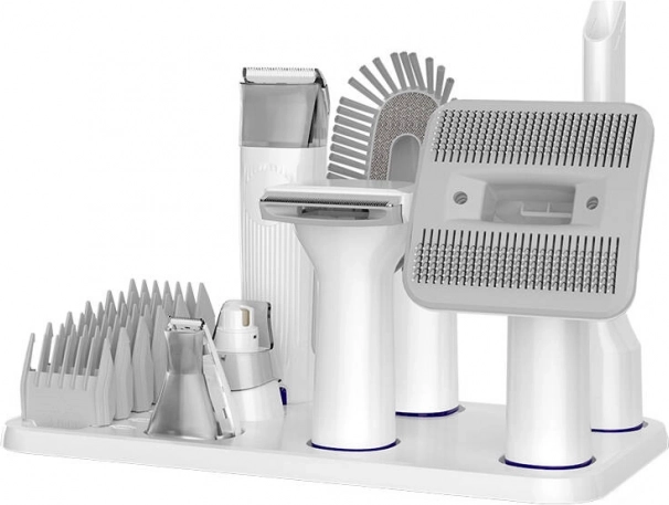 Pachetul include o mașină de tuns precisă pentru părul dintre pernițele labelor, pilă pentru gheare și mai multe tipuri de capete pentru diferite lungimi și tipuri de blană. Datorită recipientului generos de 1,5 l și accesoriilor practice de depozitare, întreținerea este simplă și igienică – soluția ideală pentru îngrijirea zilnică acasă.