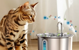Fântâna funcționează foarte silențios (doar 30 dB), fiind astfel o alegere ideală și pentru animalele nervoase. Fie că alegeți tubul detașabil sau modul Floare, animalul dumneavoastră va avea mereu acces la forma preferată de apă.
