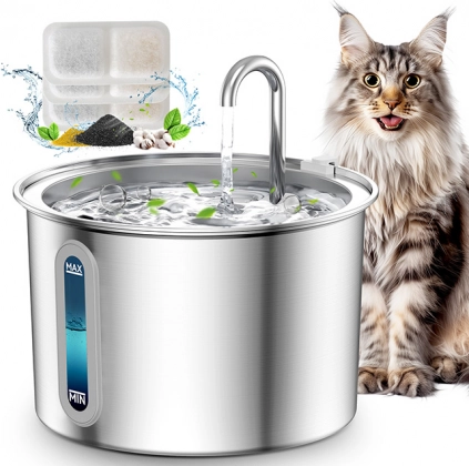Datorită utilizării oțelului inoxidabil 316, apa rămâne necontaminată și fântâna se curăță ușor. Toate piesele pot fi spălate la mașina de spălat vase, ceea ce face întreținerea mai ușoară. În plus, puteți monitoriza nivelul apei datorită unui geam transparent cu lumină LED.