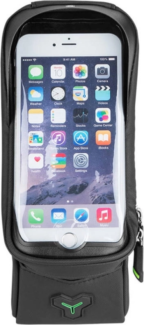 În interior există suficient spațiu pentru chei, lanternă, briceag și alte mărunțișuri. Geanta este realizată din material durabil nylon 900D în combinație cu catifea, pentru o protecție mai bună a telefonului și accesoriilor. Montarea pe țeava superioară a cadrului este rapidă și stabilă.