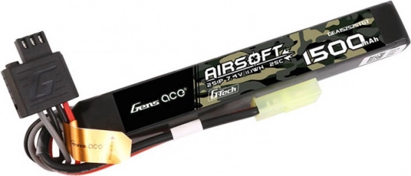 Bateria Lipo Gens Ace este un excelent sursă de energie pentru replicile airsoft. Cu o capacitate de 1500 mAh și o tensiune de 7,4V, această baterie este ideală pentru modelele AEG precum M4, CM16, SCAR, AR15, unde spațiul pentru baterie este limitat, dar performanța ridicată este esențială.