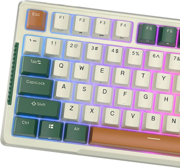 Royal Kludge RKH81 combină layout-ul compact de 75% cu funcții inteligente pentru productivitate zilnică și gaming. Obții 3 moduri de conectare (USB‑C, 2,4 GHz, Bluetooth până la 3 dispozitive), socluri hotswap pentru înlocuirea ușoară a switch-urilor și iluminare RGB cu 14 moduri. Construcția robustă reduce zgomotul, iar picioarele antiderapante asigură stabilitate pe birou.