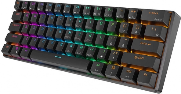 Această tastatură este echipată cu iluminare RGB cu 14 moduri, permițând crearea de efecte luminoase proprii. Designul compact economisește spațiu pe masă și bateria robustă de 1450 mAh asigură o funcționare îndelungată de până la 120 de ore cu o singură încărcare.