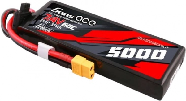 Bateria Gens Ace G-Tech este proiectată pentru performanță ridicată și siguranță în modelele RC. Oferă capacitate de 5000 mAh, tensiune 7,4 V (2S) și descărcare continuă de 60C pentru accelerație viguroasă și livrare constantă a energiei. Carcasa durabilă PC hardcase protejează celulele la impacturi și în utilizare intensă.