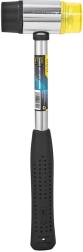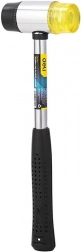 Acest ciocan are un cap de cauciuc galben și negru pentru utilizare universală fără a deteriora suprafețele.