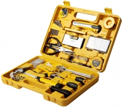 Setul de unelte Deli este ideal pentru întreținerea zilnică a locuinței și reparații mici. Stocat într-o valiză rezistentă, conține o gamă largă de unelte, inclusiv șurubelnițe, clește, metri și alte necesități pentru meșterii și gospodăriile.