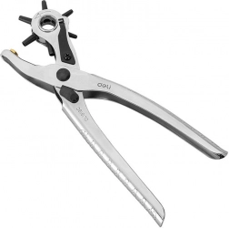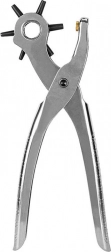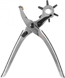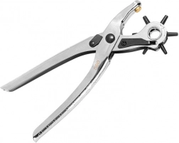 Clește perforator universal cu coroană rotativă care permite selectarea rapidă a diametrului dorit: 2 / 2,5 / 3 / 3,5 / 4 / 4,5 mm. Ideal pentru ajustarea curelelor din piele, genților, zgărzilor, dar și a textilelor sau materialelor mai subțiri. Construcția ergonomică asigură perforare comodă și precisă, fără destrămarea marginilor.