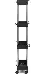 Datorită roților, raftul se mută ușor acolo unde ai nevoie. Două frâne asigură stabilitatea în timpul utilizării.