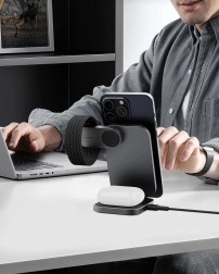 Bucurați‑vă de o încărcare wireless de două ori mai rapidă decât pe pad‑urile obișnuite de 7,5 W. MagFusion oferă până la 15 W iPhone‑urilor compatibile și încarcă simultan Apple Watch și AirPods.