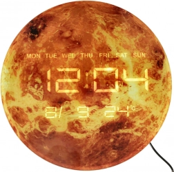 Un ceas de design cu grafică realistă a planetei Marte va deveni piesa centrală a oricărui interior – de la camera copilului până la birou. Afișajul LED clar oferă ora în format 12/24 h, data (L/Z/A), ziua săptămânii în abreviere engleză și temperatura actuală în °C.