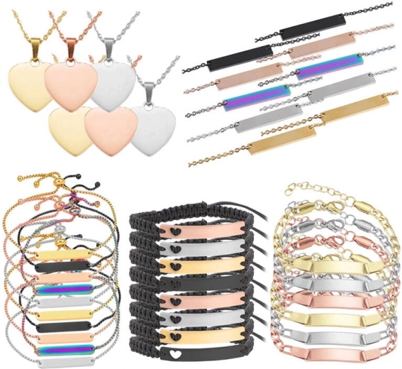 Transformă ideile în bijuterii și cadouri unice. Acest set include o selecție de pandantive, coliere și brățări din oțel inoxidabil durabil, ideale atât pentru gravuri fine, cât și pentru accente puternice. Datorită parametrilor recomandați, obții ușor rezultate consistente și curate.
