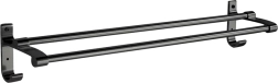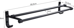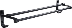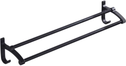 Suportul dublu elegant pentru prosoape este o alegere ideală pentru băile moderne și clasice. Cele două bare paralele oferă suficient spațiu pentru uscarea și organizarea prosoapelor, iar cârligele laterale adaugă loc suplimentar pentru accesorii. Construcția durabilă din metal în finisaj negru asigură o durată lungă de viață și întreținere ușoară.