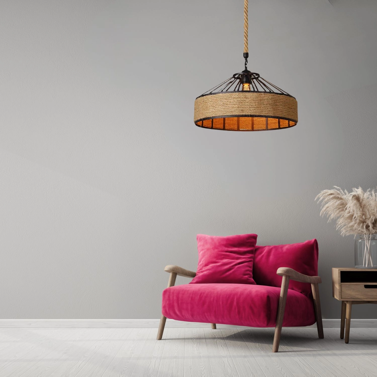 Lampa este ideală pentru living, sufragerie, deasupra barului sau pentru restaurante și hoteluri. Construcția robustă din metal garantează o durată de viață îndelungată, în timp ce frânghia adaugă un accent de design original. Alegerea becului vă aparține – optați pentru lumină caldă pentru o ambianță intimă sau neutră pentru iluminare universală.