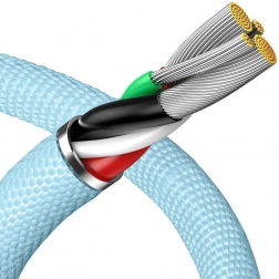 Cablu este fabricat din plastic durabil și încheiat cu un aliaj de aluminiu, ceea ce îl face rezistent la încâlcire și altă uzură. Conectorul cablului a fost supus la numeroase teste de durabilitate, ceea ce garantează o durată de viață lungă. Datorită miezului de cupru, se asigură o încărcare rapidă și o conductivitate mai bună, în timp ce cipul inteligent monitorizează temperatura pentru a asigura siguranța dispozitivelor.