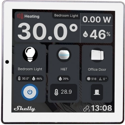 Shelly Wall Display este un panou central de control pentru casă inteligentă, cu ecran color de 4" și conectivitate Wi‑Fi/Bluetooth. Permite setarea rapidă a temperaturii, umidității și iluminării și afișează clar datele esențiale despre locuință. Datorită funcției Shelly Smart Control, poți urmări cu ușurință consumul de energie și identifica consumurile inutile.