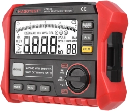 Testerul de rezistență la sol Habotest HT2302 este echipat cu un ecran LCD mare pentru o citire ușoară a valorilor afișate. Permite măsurători în domeniul 0Ω până la 4,00kΩ cu rezultate precise și eficiente în modul cu două sau trei puncte. Dispozitivul este potrivit pentru verificarea rezistenței la sol și a siguranței electrice.