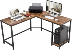 Acest birou de colț pentru computer aduce o utilizare inteligentă a spațiului și un aspect industrial elegant. Oferă suficient loc pentru monitor, laptop, imprimantă și accesorii, în timp ce cadrul din oțel și blatul de calitate în nuanță maro rustic garantează o durată lungă de viață. Datorită picioarelor reglabile, nivelați cu ușurință denivelările pardoselii și mențineți stabilitatea în timpul lucrului.