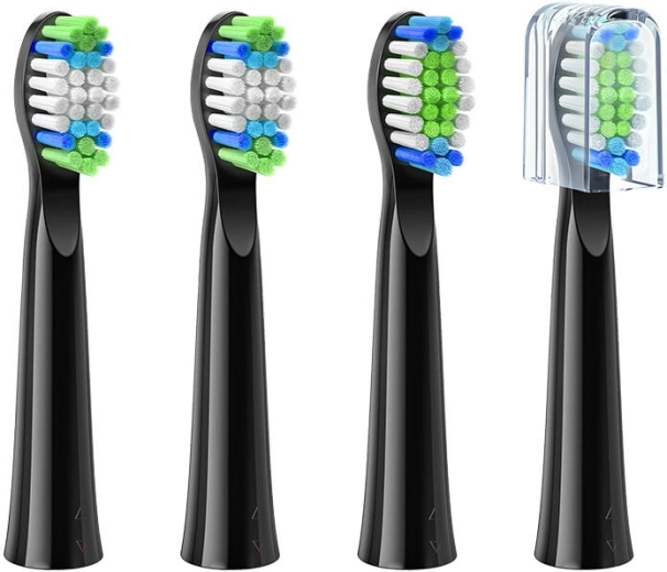Perii indicatoare se estompează treptat – odată ce s-au decolorat complet, este momentul potrivit pentru a înlocui capul. Setul de 4 bucăți asigură o rezervă comodă pentru înlocuire regulată. Capetele sunt compatibile cu periuța Bitvae Daily D2. Notă: culoarea perilor poate varia.
