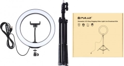 Lampa inelară PULUZ cu diametrul de 26 cm și puterea de 15 W oferă lumină uniformă și moale pentru realizarea de videoclipuri, streaming, machiaj și fotografie de produs. Datorită modurilor RGBW și albului creați ușor atmosfera dorită, în timp ce rotirea la 360° a lămpii și trepiedul stabil asigură setarea precisă a cadrului.