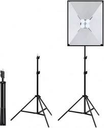 - Stativ de studio, softbox 50 × 70 cm cu suport pentru becuri, 4× LED E27 20 W, geantă de transport