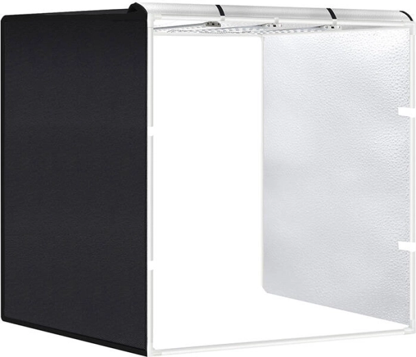 Setul include trei fundaluri din PVC - negru, alb și portocaliu, împreună cu o țesătură specială care înmoaie lumina. Cortul oferă mai multe opțiuni de fotografiere din diferite unghiuri pentru cele mai bune rezultate. Datorită mobilității și instalării ușoare, devine un ajutor indispensabil pentru fiecare fotograf.