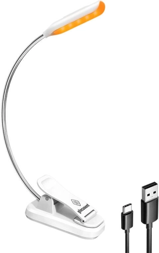 Lampă Glocusent cu clemă este un dispozitiv inovator pentru cititul confortabil al cărților seara, chiar și în camere slab iluminate. Cu un design unic inspirat de frunza de salcie, cele 10 LED-uri sunt dispuse pentru a oferi o iluminare uniformă. Trei niveluri de luminozitate permit ajustarea luminii, de la un fascicul luminos până la o strălucire blândă, care nu deranjează somnul celor din jur.