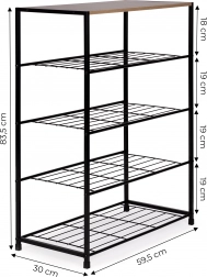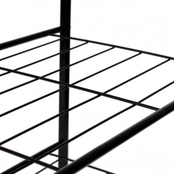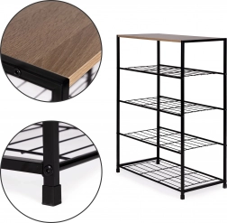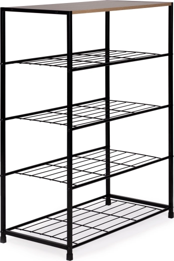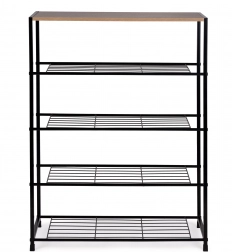 Cadrul negru robust asigură durabilitate lungă și stabilitate chiar și la încărcare maximă. Rafturile aerisite tip grătar susțin circulația aerului și uscarea rapidă a încălțămintei.
