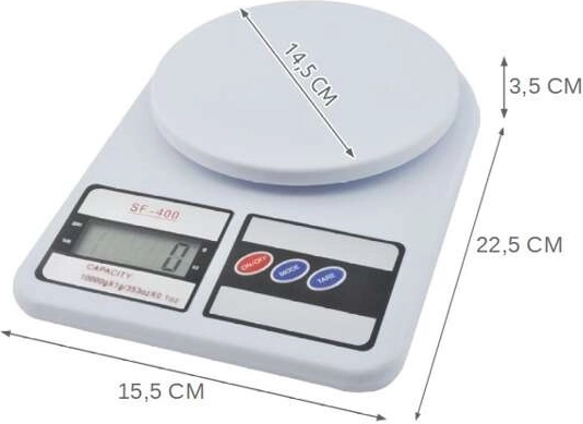 Cântarul de bucătărie electronic, cu o capacitate mare de până la 10 kg și pas fin de 1 g, asigură măsurători fiabile și precise chiar și pentru cantități mici de ingrediente. Datorită ecranului LCD și controlului intuitiv, utilizarea este rapidă și comodă.