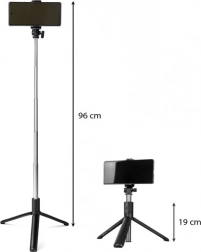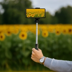 Cu o simplă glisare, transformi selfie stick-ul într-un trepied, care permite realizarea de fotografii și videoclipuri stabile. Monopodul se extinde până la 92 cm și permite rotația suportului telefonului la 360°.