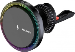 Încărcătorul auto wireless Rocoren este ideal pentru cei care apreciază confortul și aspectul estetic. Oferă încărcare rapidă între 5W și 15W, suportă protocoalele de încărcare rapidă QC3.0 și PD2.0, asigurând încărcarea instantanee a telefonului tău. Încărcătorul se atașează ușor la grila de ventilație a mașinii și se potrivește bine cu interiorul oricărei mașini datorită designului său elegant negru cu iluminare LED.