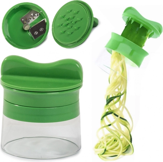 Spirălatorul și tocătorul manual pentru legume este un ajutor excelent pentru orice bucătărie. Transformă legumele în tăiței și spirale atrăgătoare, o alternativă grozavă la pastele din făină. Recipientul transparent colectează tot conținutul, astfel încât tăierea este curată și clară.