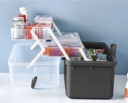 Păstrați evidența medicamentelor, bandajelor și accesoriilor mici. Acest organizator mare RUHHY din plastic PP de calitate îmbină rezistența, siguranța și utilizarea confortabilă. Capacul transparent grăbește orientarea, iar încuietoarea solidă protejează conținutul de copii și de deschiderea accidentală.