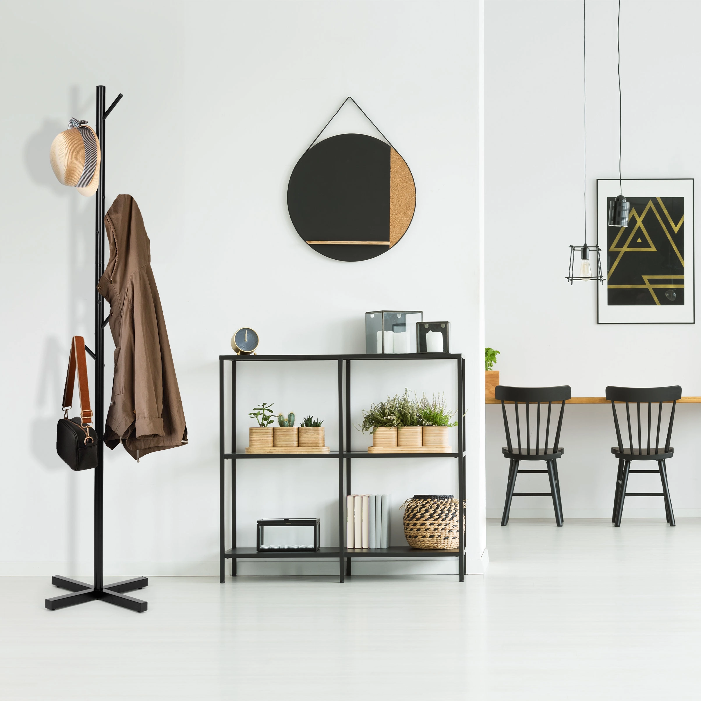 Design universal: Datorită stilului simplu și modern, cuierul completează perfect interiorul oricărui spațiu. Înălțimea sa de 177,5 cm garantează suficient loc pentru agățarea diverselor tipuri de haine.