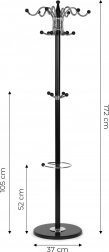 Partea superioară oferă 5 brațe care creează până la 10 locuri pentru agățarea paltoanelor și jachetelor. La mijloc găsiți cârlige suplimentare ideale pentru pălării sau genți, iar jos o spirală practică pentru depozitarea umbrelor. Patru cârlige mai joase sunt accesibile copiilor, astfel încât își pot agăța singuri lucrurile și pot învăța ordinea.