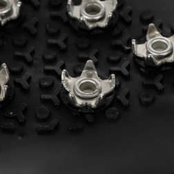 Țepii metalici și segmentele dintate sporesc aderența pe suprafețele înghețate, astfel încât vă puteți deplasa cu mai multă siguranță și stabilitate.