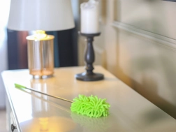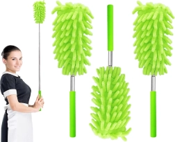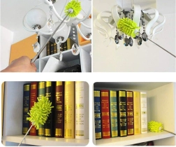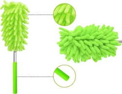 Păstrați casa fără praf rapid și fără efort. Pâsla verde din microfibră fină atrage și reține praful, fără a-l ridica în aer. Datorită mânerului telescopic metalic ajungeți în siguranță la candelabre, rafturi superioare și muchiile de sus ale dulapurilor – fără scară.