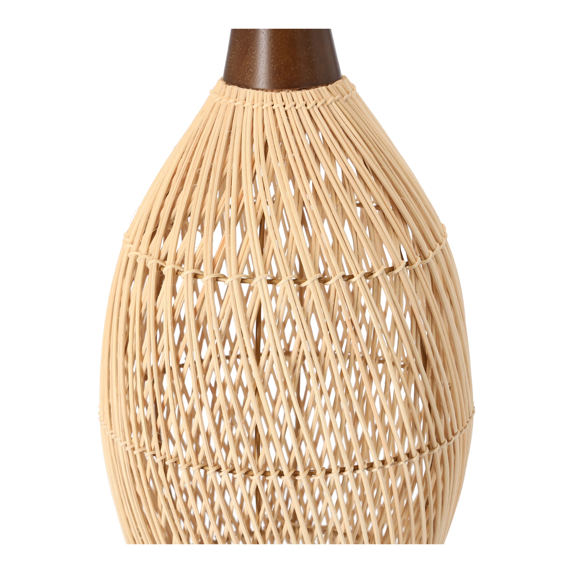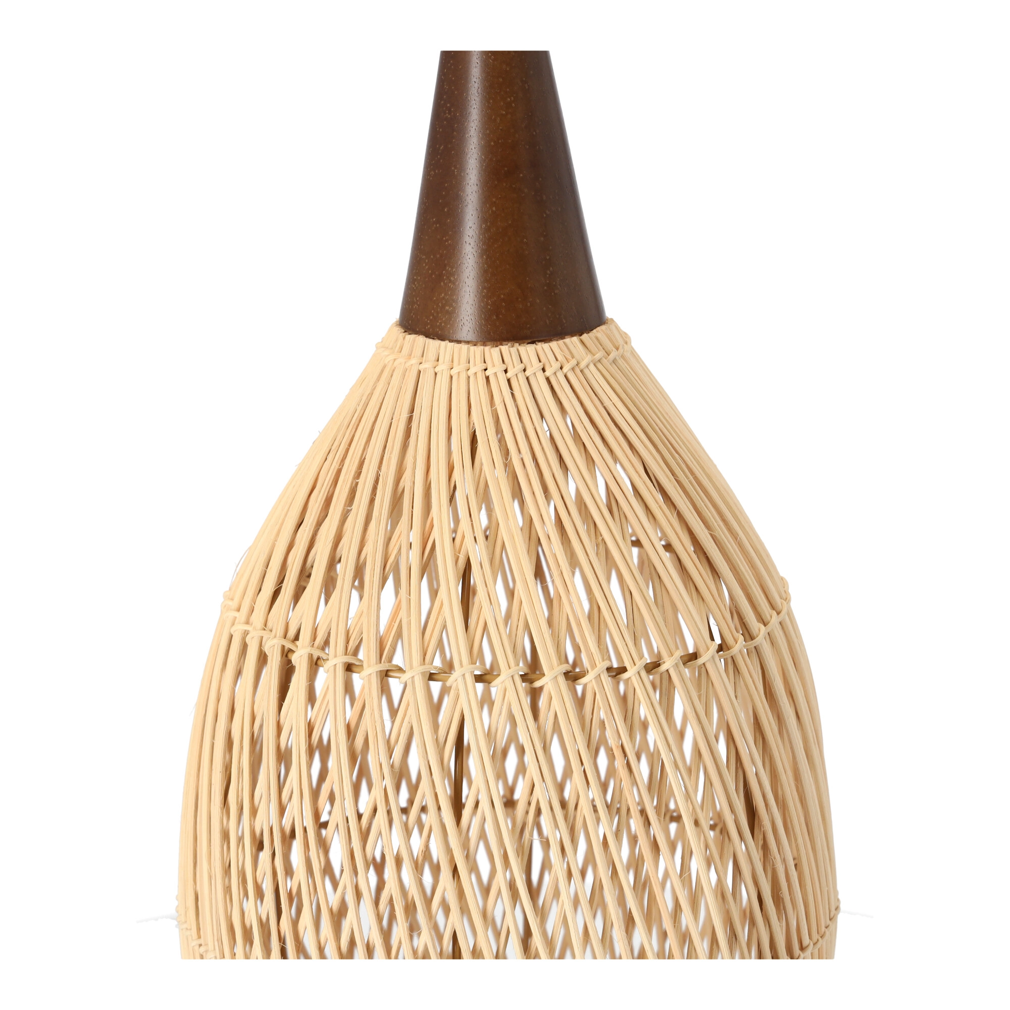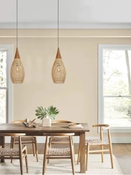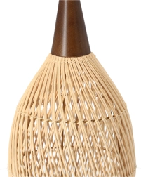 Această lampă suspendată din ratan și lemn de calitate se remarcă prin împletitura ușoară și aerată, care difuzează frumos lumina și proiectează umbre decorative. Materialele naturale subliniază stilul rustic, scandinav și boho și adaugă căldură spațiului.