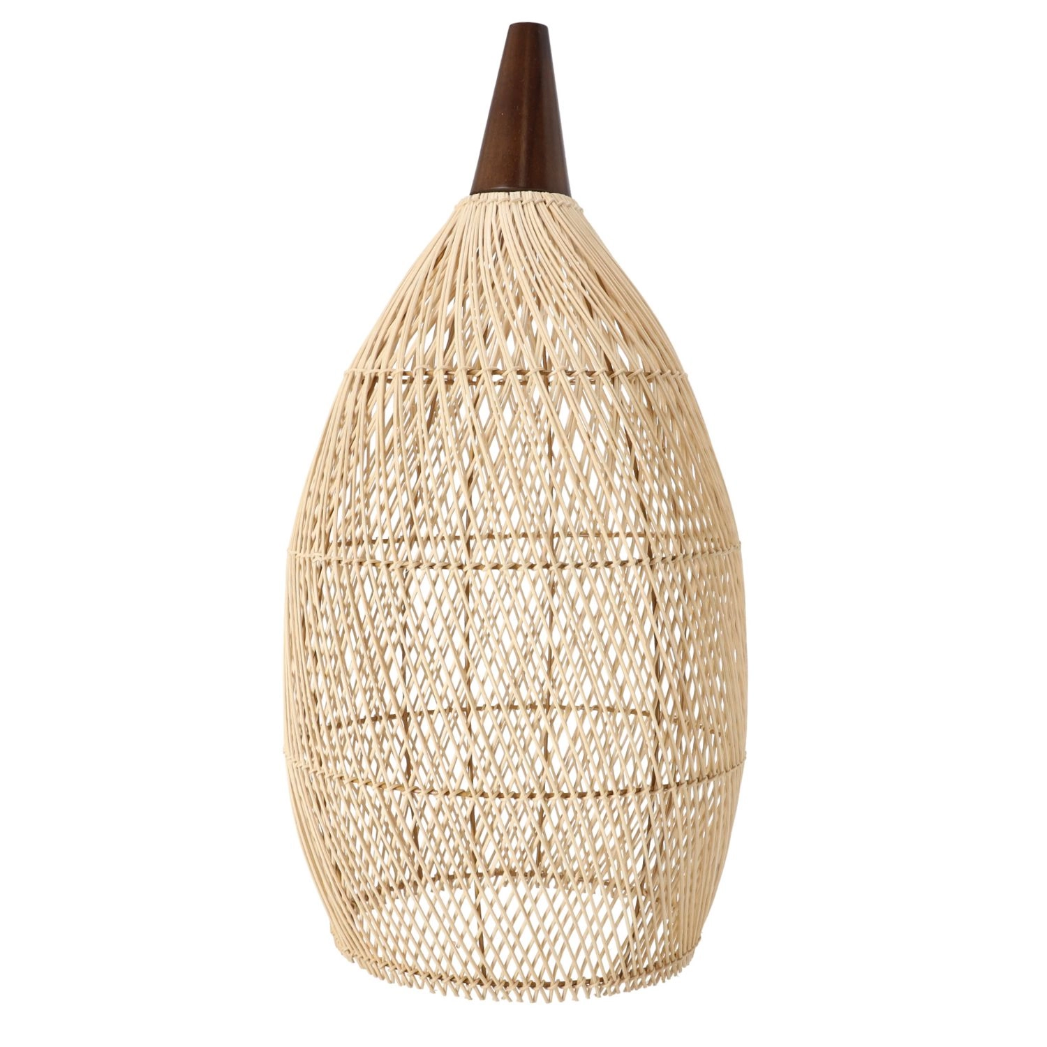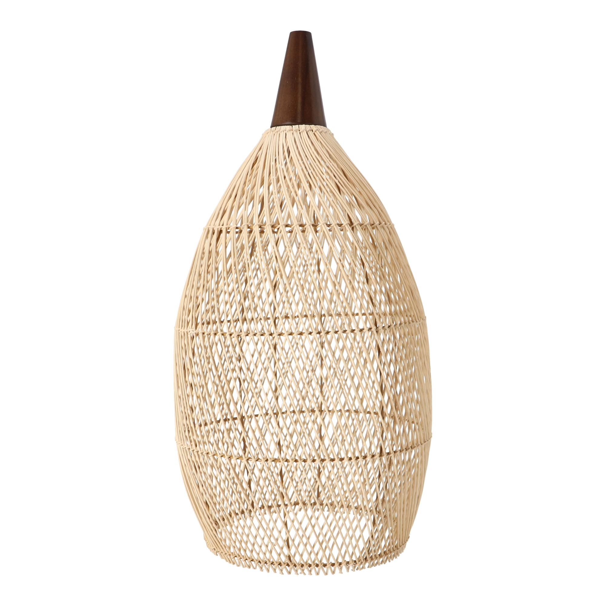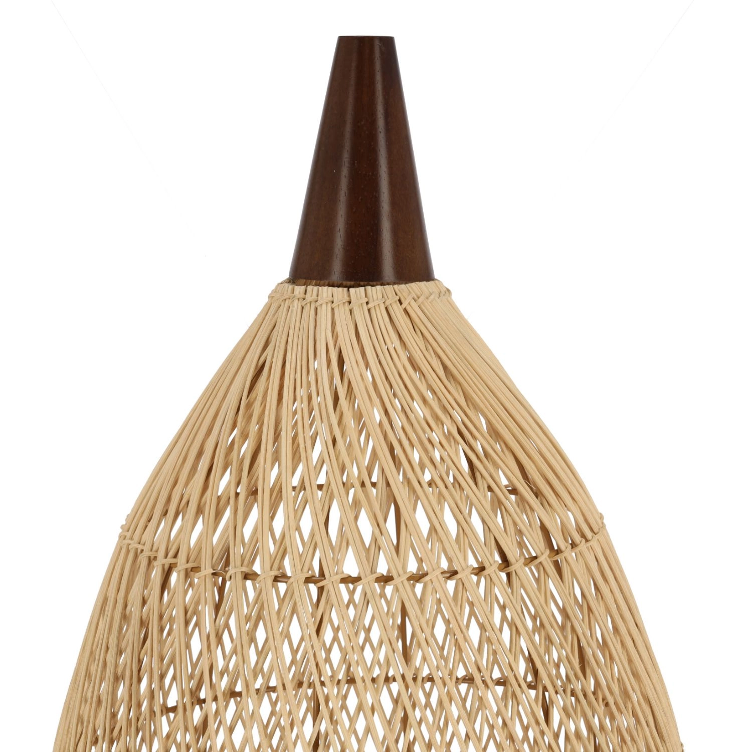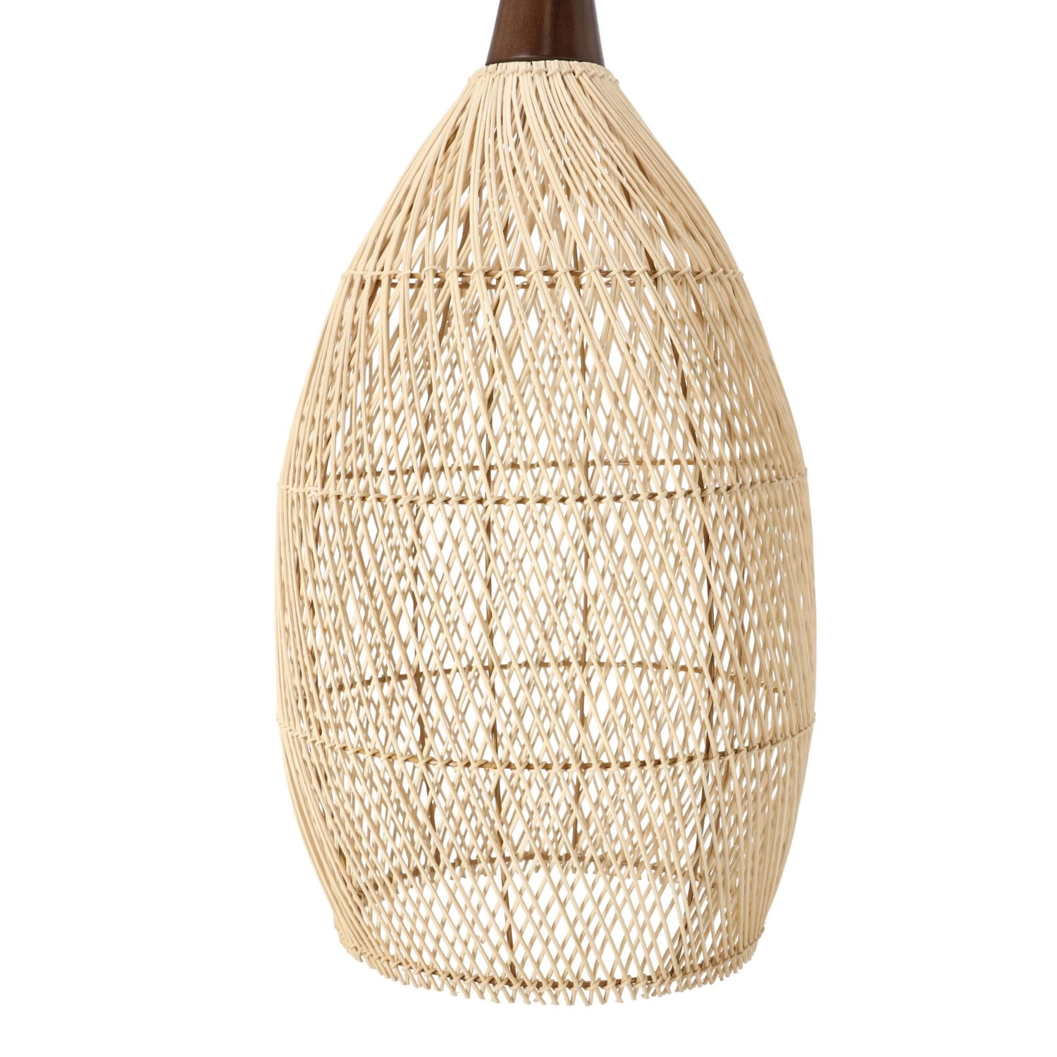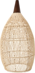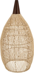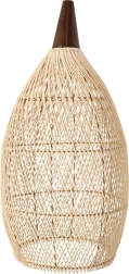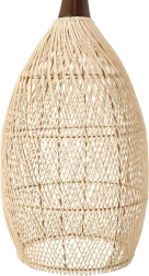 Ratanul natural combinat cu un gât din lemn creează un aspect lejer și aerisit, care difuzează frumos lumina și trasează umbre decorative. Diametrul de 35 cm și înălțimea de 70 cm îl transformă într-un element pronunțat, dar armonios, deasupra mesei de dining, a măsuței de cafea sau a noptierelor.