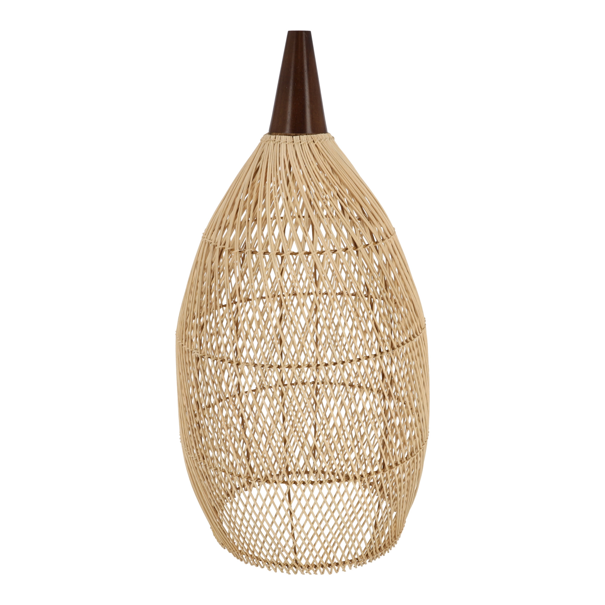 Lustrul suspendat elegant din ratan și lemn naturale aduce în interior o lumină caldă și primitoare și un farmec natural. Datorită formei atemporale și materialelor, se potrivește perfect în interioare boho, scandinave și rustice – pentru living, zonă de luat masa sau dormitor.