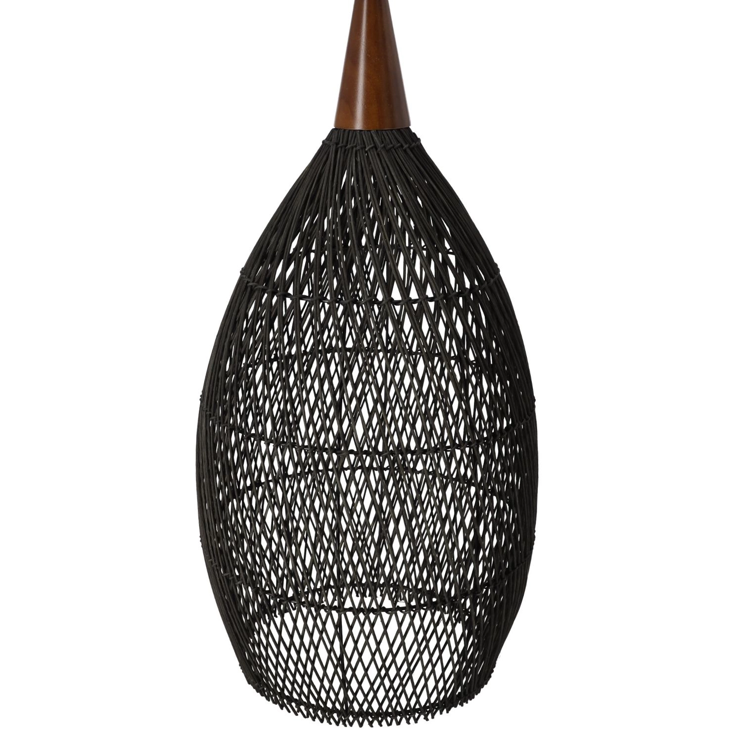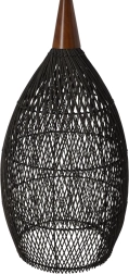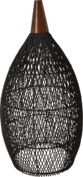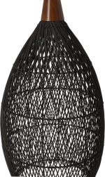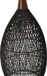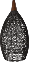 Lustra suspendată din ratan și lemn, în eleganta culoare neagră, aduce în interior căldură naturală și o atmosferă primitoare. Se potrivește perfect stilurilor boho și scandinav, luminează 5–10 m² și, datorită soclului E27, alegi cu ușurință becul potrivit.