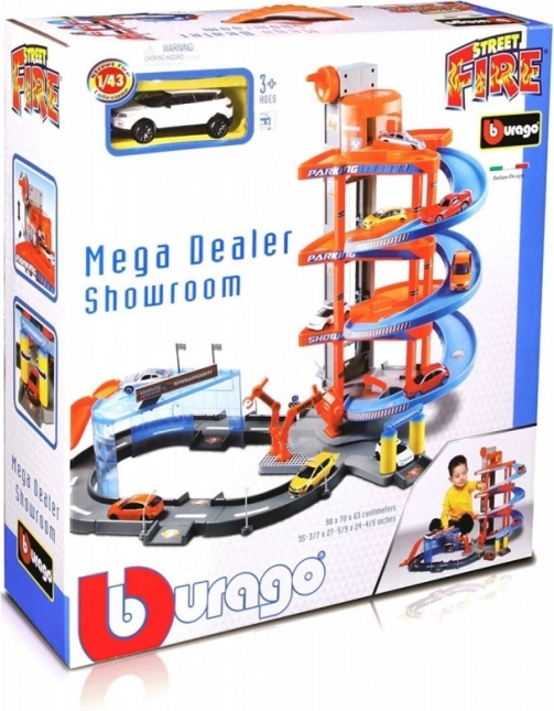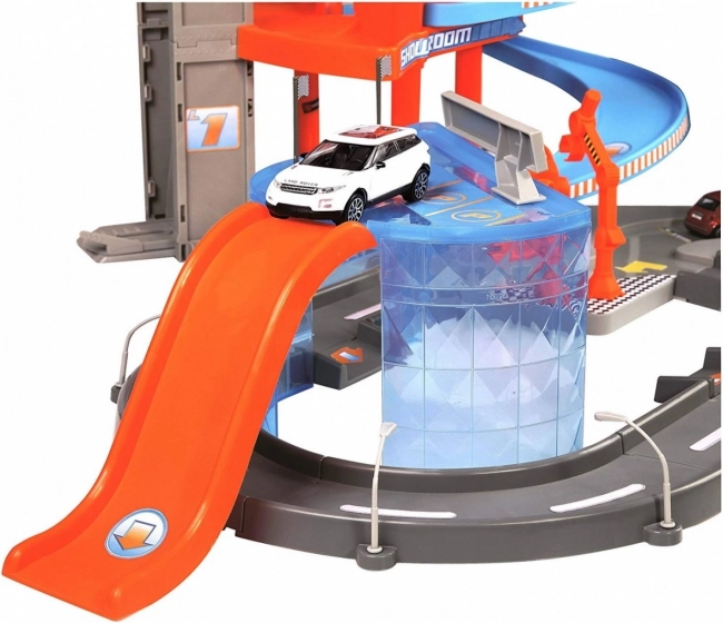 Această parcare pe mai multe niveluri Bburago cu spălătorie ascunde o mulțime de elemente funcționale! Urcă mașinuța cu liftul până la cel mai înalt etaj al garajului și las-o să coboare pe șosea! Oprește la service, spală mașina la spălătorie și treci prin barierele rabatabile!
