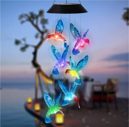 .Lampa solară cu colibri este o lumină LED unică ce adaugă farmec oricărui balcon, terasă, grădină sau încăpere. Datorită energiei solare, aceste clopoței se aprind automat la lăsarea întunericului și își schimbă culorile între roșu, portocaliu, albastru, galben și mov, creând un efect luminos magic.