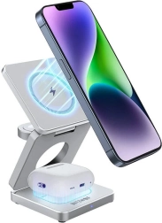 Design prietenos cu utilizatorulÎncărcătorul 3‑în‑1 este compact și portabil, ceea ce ușurează depozitarea și transportul. În plus, permite reglarea liberă a înălțimii și unghiului, iar folosirea materialelor de înaltă calitate se traduce printr-un produs durabil. Este ideal pentru acasă și birou, precum și pentru călătorii sau deplasări de serviciu.