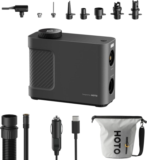 Compresorul portabil HOTO este un dispozitiv de neînlocuit pentru oricine are nevoie de o soluție rapidă și eficientă pentru umflarea diverselor obiecte. Datorită designului său compact și performanței ridicate, este ideal în călătorii, la camping, în excursii cu familia sau în situațiile de urgență cotidiene. Îmbină puterea și funcționalitatea într-un singur aparat, ceea ce îl face un companion de încredere în orice situație.